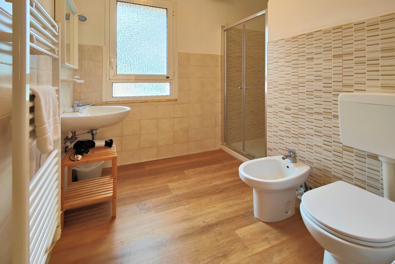 - bagno con doccia, wc e bidet, asciugacapelli